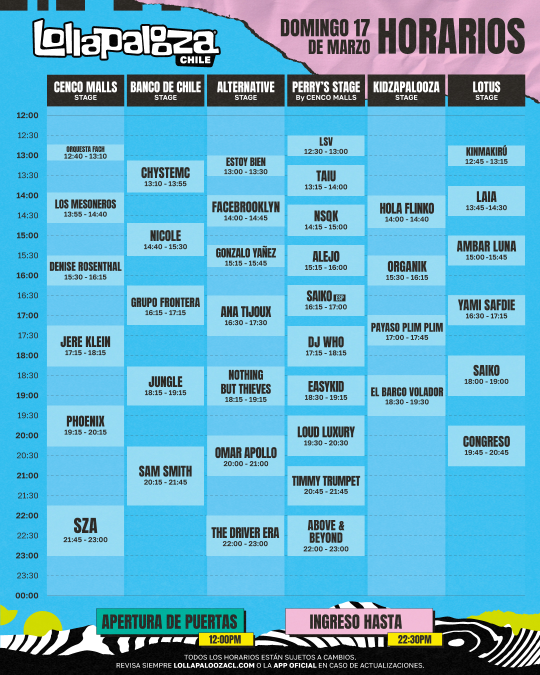 Ya podés conocer los horarios del festival, compartirlos con tus amigos y comenzar a vivir esta fiesta única de lollapalooza argentina.